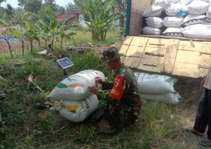 Babinsa bersinergi melaksanakan kegiatan pendampingan penyerapan gabah oleh Tim Bulog dalam bentuk pembelian gabah kering yang baru panen milik petani dengan harga Rp. 6.500,-/Kg.