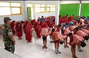 Magetan. – Dalam upaya membentuk karakter, kedisiplinan, kekompakan sejak dini, Babinsa Koramil Tipe B 0804/08 Barat Serka Sumadi memberikan pelatihan dasar Baris Berbaris (PBB) kepada siswa dan siswi SDN Mangge 2 Kecamatan Barat, Kabupaten Mageta. Rabu (17/3/25)