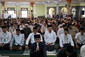 Magetan. Komandan Kodim (Dandim) 0804/Magetan Letkol Inf Hasan Dasuki, S.Sos., M.I.P., bersama PJ. Bupati Magetan, Kapolres Magetan, Ketua DPRD Magetan serta Forkopimda Magetan lainnya melaksanakan Sholat Idul Fitri 1 syawal 1446 H tahun 2025 di Masjid Agung Baitussalam Magetan. Senin (31/3/25)