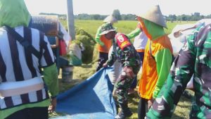 Dalam kesempatan itu Sertu yahmin menyampaikan,kegiatan pendampingan kepada kelompok tani merupakan kegiatan rutin yang kami laksanakan,untuk membantu memanen padi warganya bersama kelompok tani.