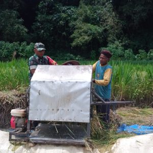 Magetan. – Sebagai bentuk dukungan terhadap ketahanan pangan di wilayah binaannya, Babinsa Koramil 0804/02 Plaosan Serda Suyani, terjun langsung ke sawah membantu para petani memanen padi di Desa Durenan, Kecamatan Sidorejo, Kabupaten Magetan. Selasa (25-03-2025)