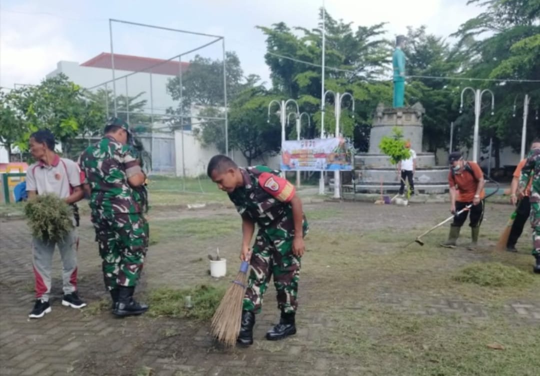 Magetan. – Dalam upaya membersihkan lingkungan fasilitas umum Anggota Koramil Tipe B 0804/08 Barat Bersama Anggota Polsek Barat dan masyarakat Melaksanakan Kerja bakti membersihkan area taman Pancasila di kelurahan Tebon, Kecamatan Barat, Kabupaten Magetan. Selasa (25/3/25)