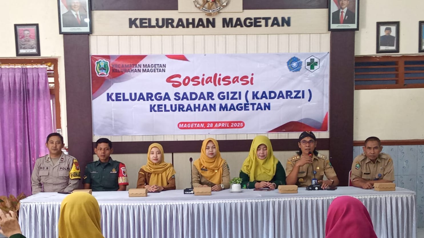 Kegiatan Sosialisasi Keluarga Sadar Gizi (Kadarzi) tersebut dihadiri oleh Bpk. Sucipto S.Sos (Kepala Kelurahan Magetan), Aipda Eko Budi (Bhabinkamtibmas Kel. Magetan),Serda Deny Sumarsono (Babinsa Kel. Magetan), Ibu Endah (Bidan Kel. Magetan/Narasumber), Ibu Putri (Anggota Pukesmas Candirejo), Ibu Heny (Ketua TP PKK) beserta anggota, Perangkat Kelurahan Magetan, Kader Posyandu Kel. Magetan, ibu – ibu orang tua Balita Kel. Magetan.