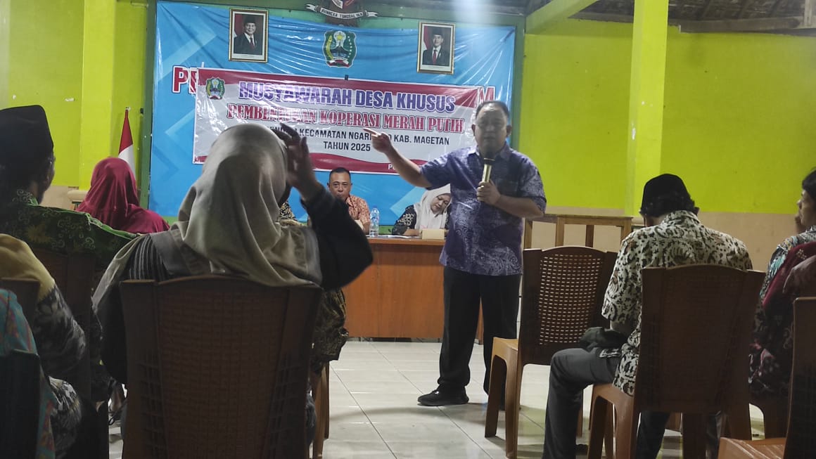 Magetan.- Babinsa desa Pendem Koramil 0804/01 Magetan Kodim 0804 Magetan Serka Zaenal Arifin menghadiri pelaksanaan kegiatan musyawarah Desa Khusus ( MusDesSus ) Pembentukan Pengurus Koperasi Desa Merah Putih dan Tematik Desa bertempat di Balaidesa Desa Pendem Kecamatan Ngariboyo Kabupaten Magetan. Rabu Malam (21/5/25)