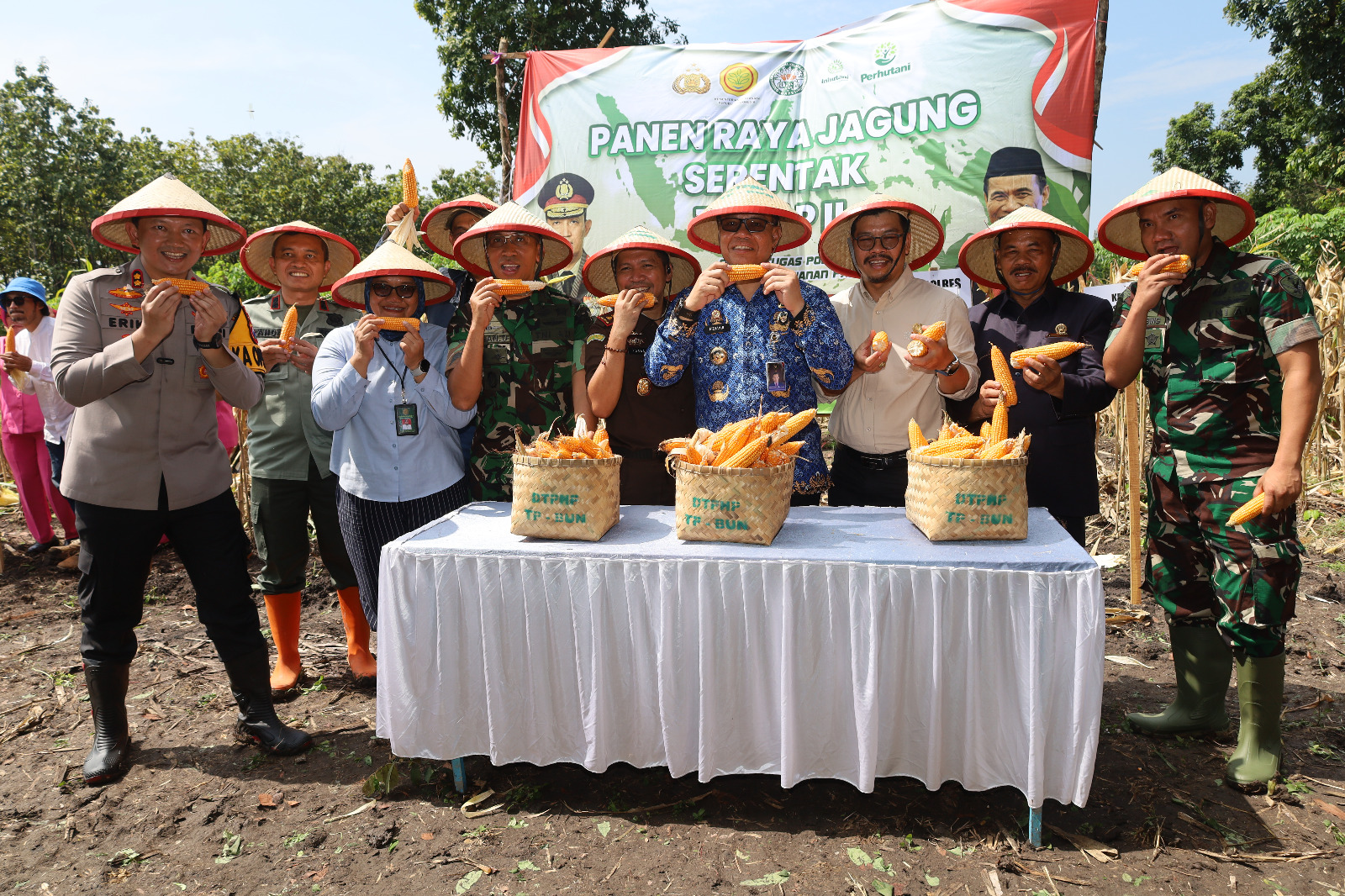 Magetan.- Dandim 0804/Magetan Letkol Inf Hasan Dasuki, S.Sos., M.I.P., bersama Kapolres Magetan AKBP Raden Erik Bangun Prakasa, SH., SIK., MM., dan jajaran Forkopimda Magetan melaksanakan kegiatan panen raya jagung serentak tahap II Polres Magetan di Desa Mategal, Kecamatan Parang,Kabupaten Magetan. Selasa (20/5/2025)