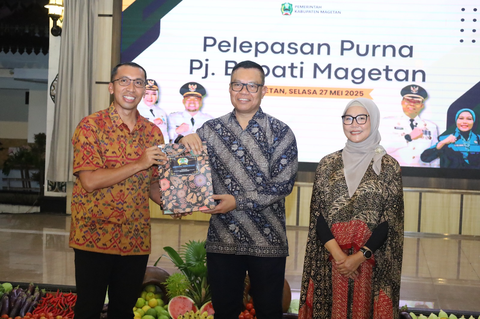 Magetan. – Komandan Kodim (Dandim) 0804/Magetan Letkol Inf Hasan Dasuki, S.Sos, M.I.P., menghadiri pelepasan purna Pj Bupati Magetan Nizhamul, S.E., M.M., dan Ibu Raja Arena Sumela, di Pendopo Surya Graha Kabupaten Magetan. Selasa malam (27/5/2025)