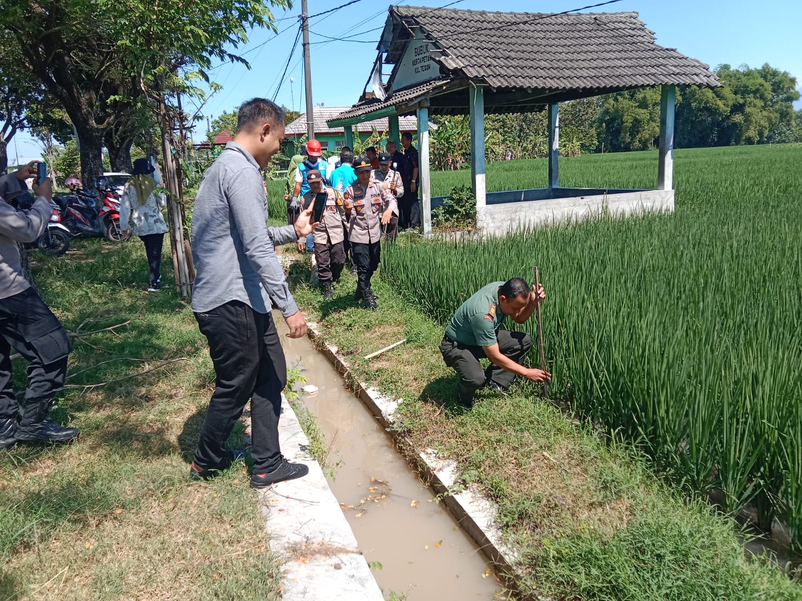 Magetan.- Danramil 0804/08 Barat Kapten Inf Denny Erwanto bersama forkopimca Barat terjun langsung ke sawah menghimbau masyarakat tentang larangan penggunaan aliran listrik untuk jebakan tikus di sawah, di Kecamatan Barat, Kabupaten Magetan, Minggu (8/6/25)