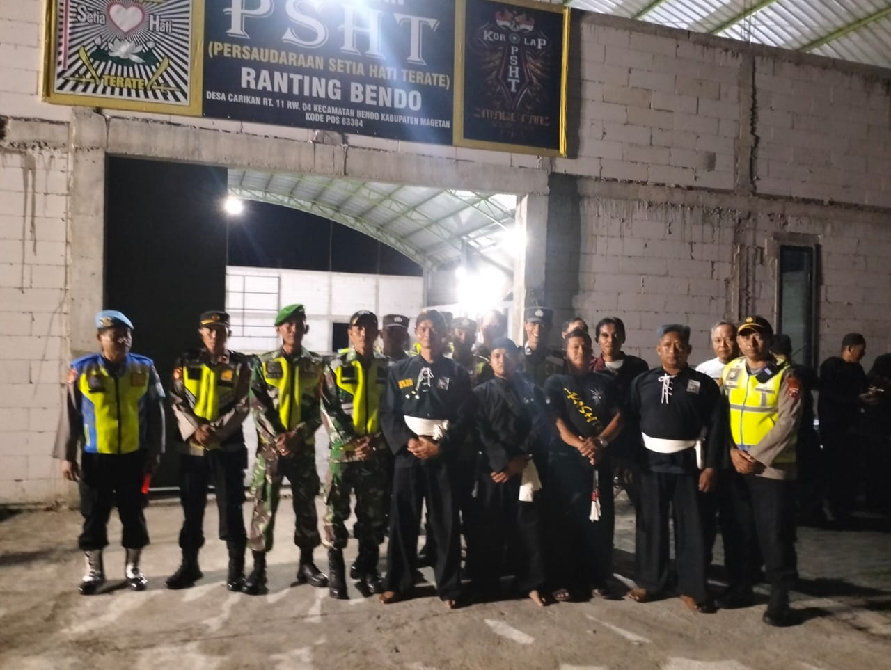 Magetan. – Koramil 0804/13 Bendo bersama Polsek Bendo melaksanakan pengamanan dalam rangka kegiatan Ke-SH an calon warga baru Persaudaraan Setia Hati Terate (PSHT) Ranting Bendo tahun 2025 yang diselenggarakan di padepokan PSHT Ranting Bendo di Ds.Carikan, Kec. Bendo Kab. Magetan. Selasa (01/07/2025)