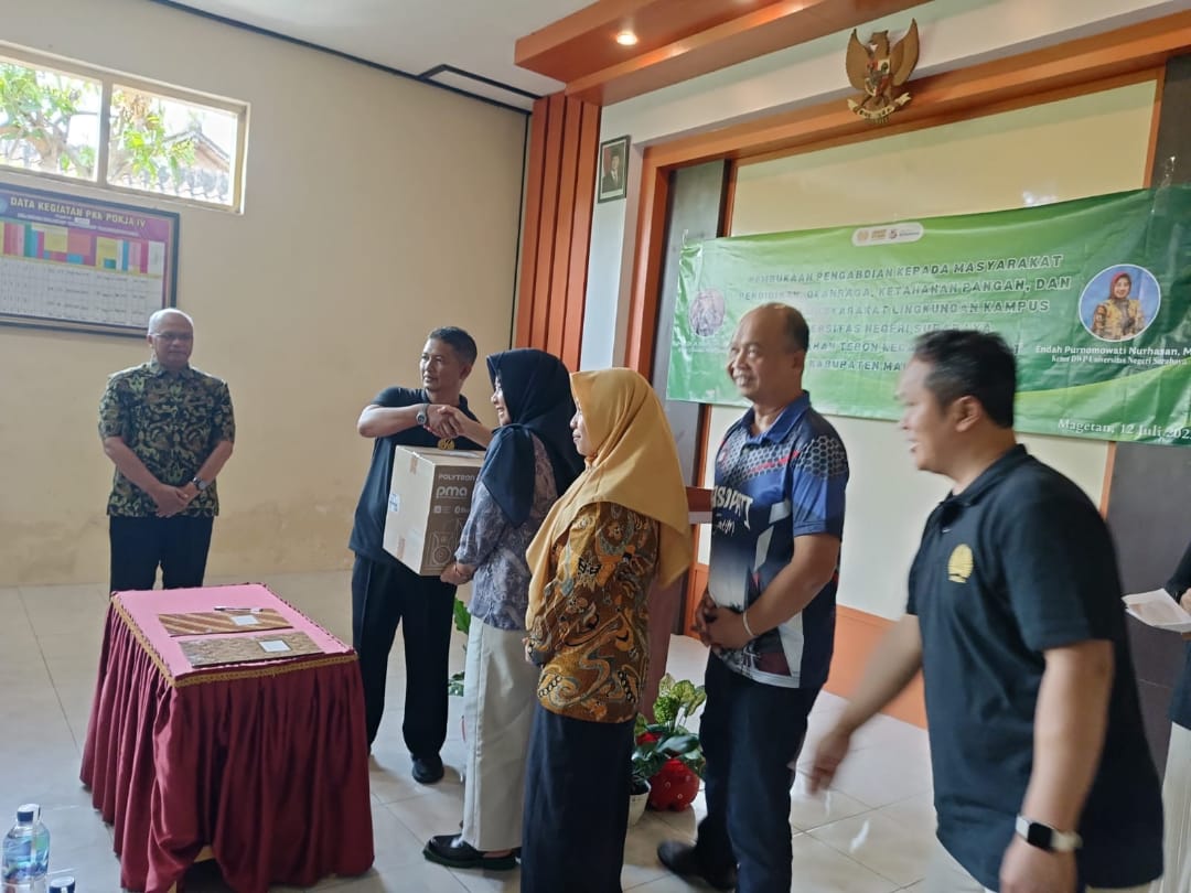 Magetan – Bati Tuud Koramil 0804/08 Barat Serma Suwandi menghadiri pembukaan pengabdian kepada masyarakat di bidang pendidikan, olahraga, ketahanan pangan dan program Masyarakat di Lingkungan Kampus Universitas Negeri Surabaya (UNESA) bagi masyarakat Kelurahan Tebon Kecamatan Barat Kabupaten Magetan,Senin (14/7/25)