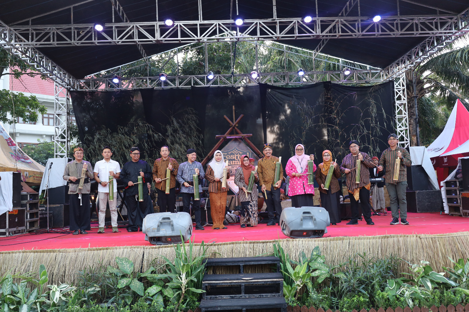 Festival Bambu Magetan Djadoel 2025 dibuka sore ini, Pembukaan ditandai dengan pemukulan kentongan Bambu yang dilakukan langsung oleh Bupati Magetan Hj. Nanik Endang Rusminiarti, M.Pd bersama Dandim 0804/Magetan Letkol Inf Hasan Dasuki, S.Sos., M.I.P., serta jajaran Forkopimda Kabupaten Magetan.