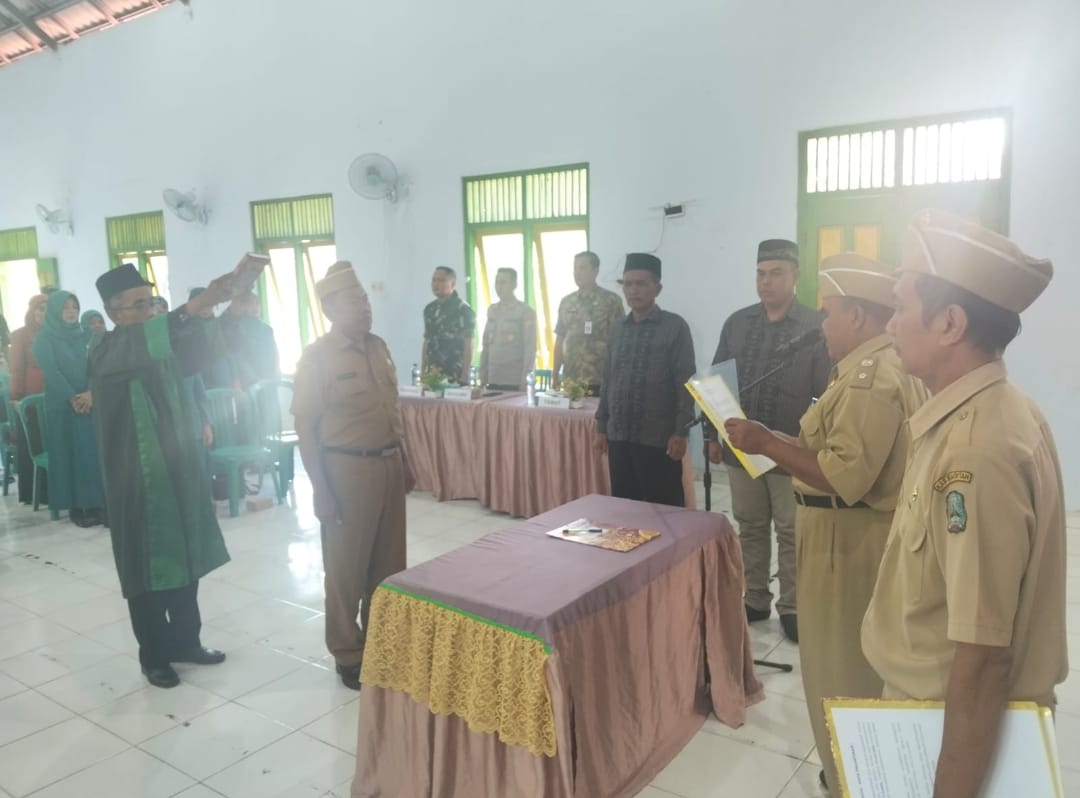 Magetan – Danpos Kartoharjo Peltu Nanang B.S Koramil 0804/08 Barat bersama Babinsa Serka Budi Wiyono menghadiri acara mutasi jabatan perangkat Desa kasi pemerintahan ke kamituwo bertempat di balai Desa Bayemwetan Kecamatan Kartoharjo Kabupaten Magetan, Jumat (11/7/25)