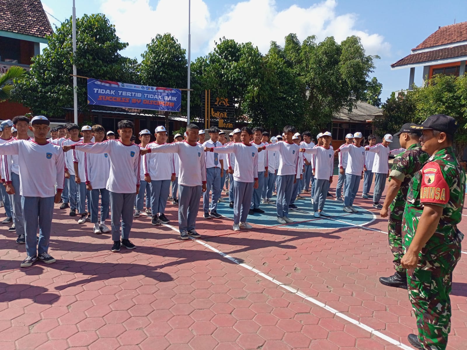 Setelah selesai Wasbang kemudian siswa siswi mendapatkan pelatihan PBB gerakan dasar dari anggota Koramil 0804/01 Magetan. Gerakan yang diberikan dalam PBB tersebut diantaranya Sikap sempurna, Istirahat ditempat, penghormatan,hadap kanan dan hadap kiri.