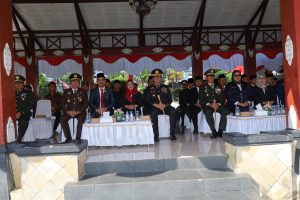 Upacara yang berlangsung khidmat ini dipimpin langsung oleh Kapolres Magetan AKBP Raden Erik Bangun Prakasa SH SIK MM sebagai Inspektur Upacara (Irup), dan di hadiri berbagai unsur Forkopimda Kota Magetan.