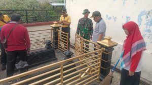 Magetan.– Danramil 0804/01 Magetan Kodim 0804 Magetan Kapten Caj Jemani pimpin apel dan kegiatan Karya Bhakti dalam rangka menyambut HUT RI ke-80 dan menjaga kelestarian sejarah Leluhur Kabupaten Magetan di makam Ki Mageti (Tokoh yang diyakini sebagai cikal bakal berdirinya Kabupaten Magetan) dan makam Kyai Hasan Besari (Imam Pertama Masjid Agung Magetan). bertempat di Makam Ki Mageti, Jl. Basuki Rahmat Utara, dan Makam Kyai Hasan Besari, Jl. Thamrin, Kelurahan Magetan Kecamatan Magetan Kabupaten Magetan.Rabu (30/08/2025)