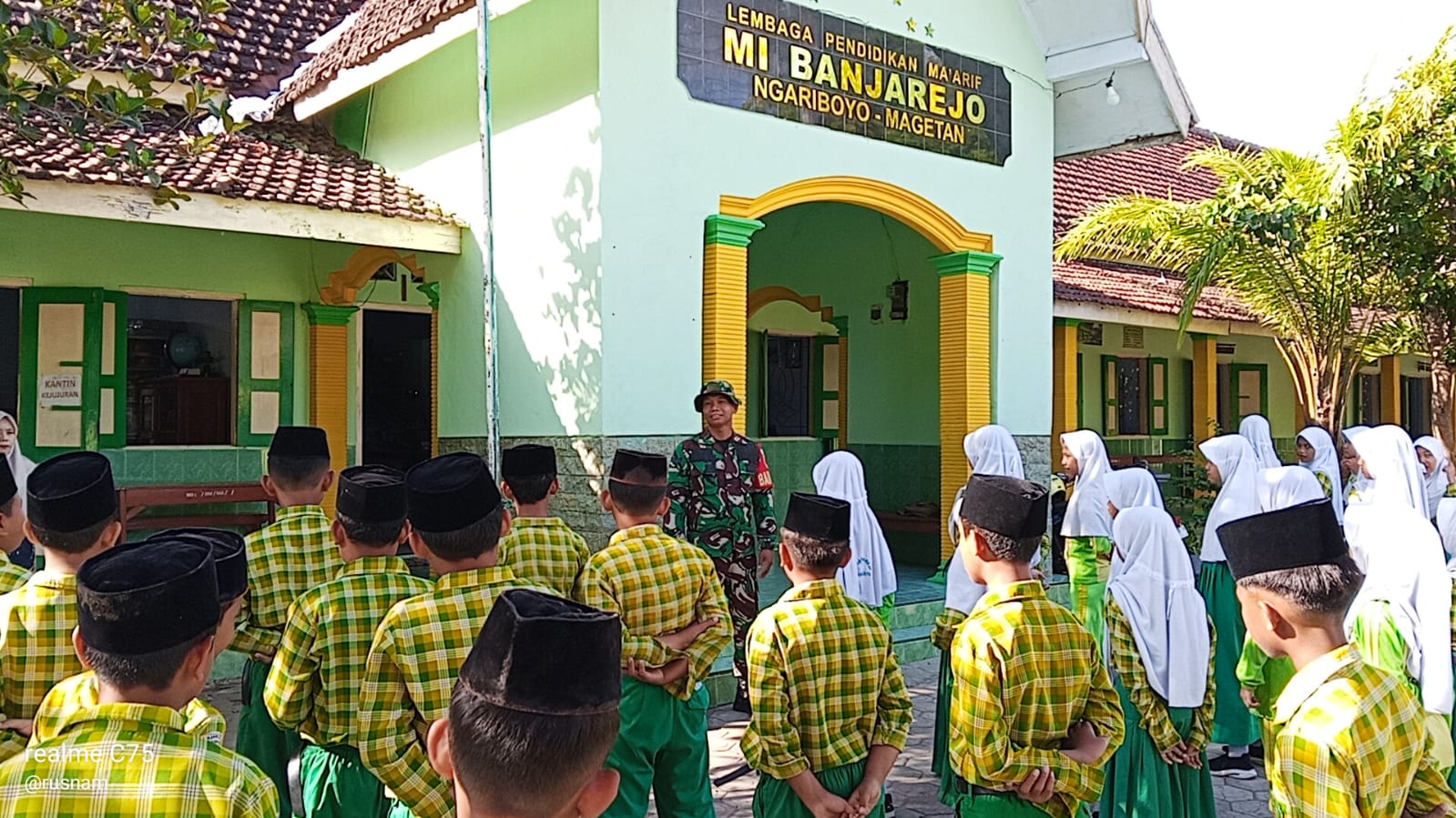 Bati TUUD Koramil Tipe B 0804/01 Magetan memberikan pembekalan wawasan kebangsaan (wasbang) kepada siswa MI (Madrasah Ibtidaiyah) Kegiatan ini bertujuan untuk menanamkan nilai-nilai kebangsaan sejak dini dan membangun kedekatan antara pihak kepolisian dengan dunia pendidikan.