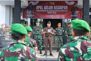 Apel dipimpin langsung oleh Komandan Kodim 0804/Magetan, Letkol Inf Hasan Dasuki, S.Sos., M.I.P. Apel kesiapan ini merupakan wujud nyata sinergi antara Kodim 0804/Magetan dengan Kejaksaan Negeri Magetan dalam mendukung kelancaran pelaksanaan tugas penegakan hukum di wilayah Kabupaten Magetan.