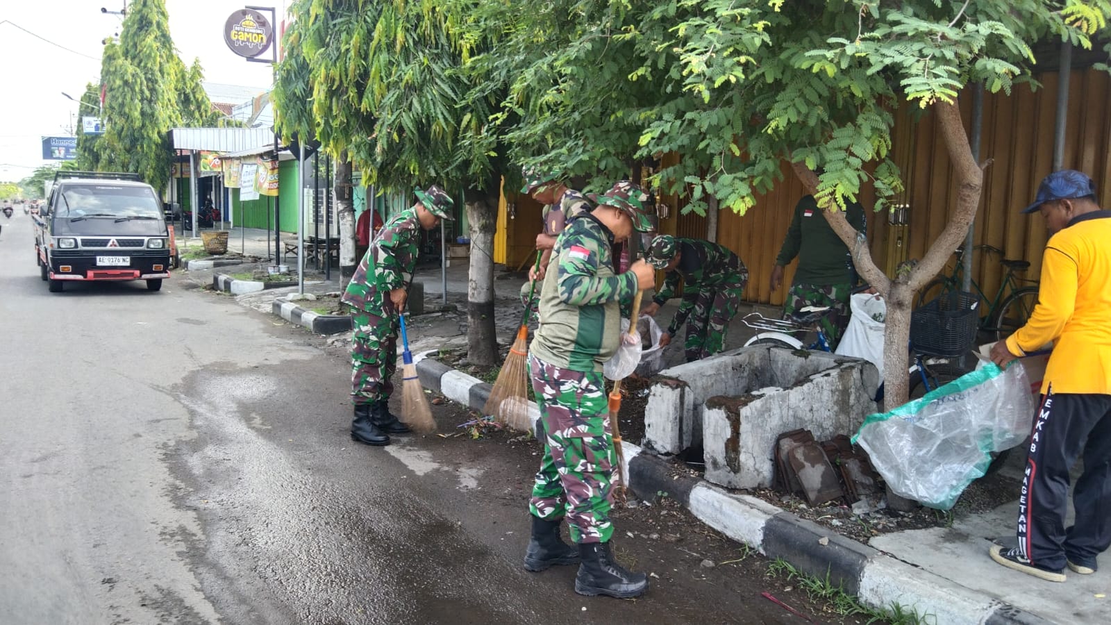 Magetan. – Gerebek pasar dalam konteks ini kegiatan Anggota Koramil 0804/08 Barat bersama pengelola pasar, tim DKP, pedagang dan warga sekitar pasar secara bergotong-royong membersihkan area pasar tradisional untuk menciptakan lingkungan pasar yang lebih bersih, nyaman dan asri bertempat di pasar tradisional Kelurahan Mangge Kecamatan barat kabupaten Magetan, Minggu (3/8/25)