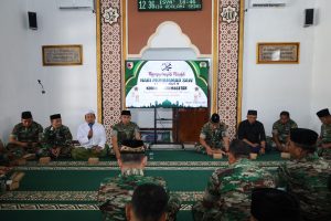 Magetan.- Kodim 0804/Magetan peringatan Maulid Nabi Muhammad S.A.W tahun 1447 H/2025 M dengan tema “Membangun Karakter Personil TNI Prima Melalui Sunah Rasulullah”, acara berlangsung di Masjid At Taqwa Makodim 0804/Magetan. Jum’at (29/08/2025)