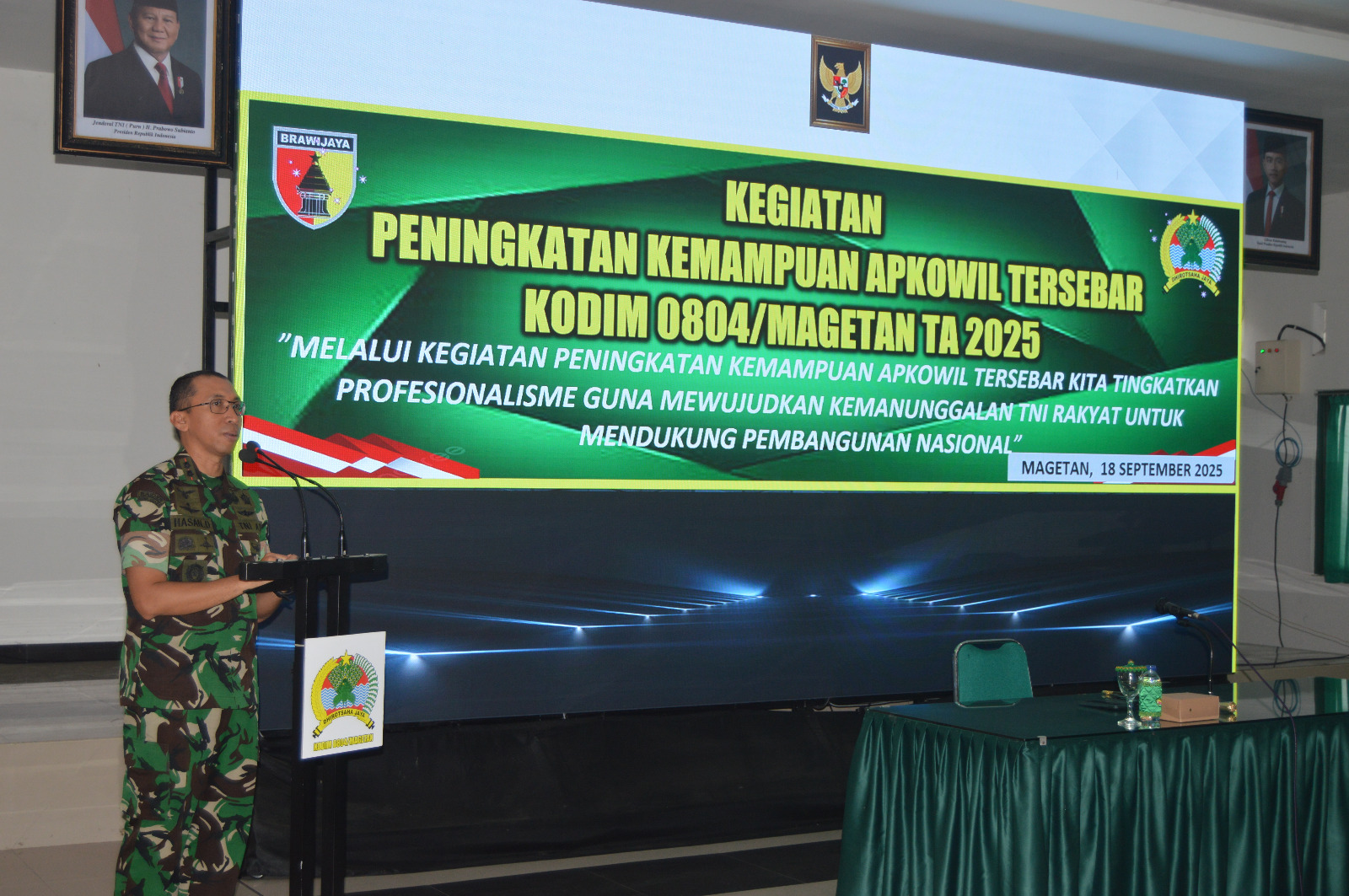 Magetan. Untuk menyiapkan keutuhan wilayah pertahanan aspek darat yang tangguh, Komando Distrik Militer (Kodim) 0804/Magetan menggelar kegiatan Peningkatan Kemampuan (Katpuan) Aparat Komando Wilayah (Apkowil) Tersebar tahun 2025 di Aula Kodim 0804/Magetan, Kamis (18/09/25).