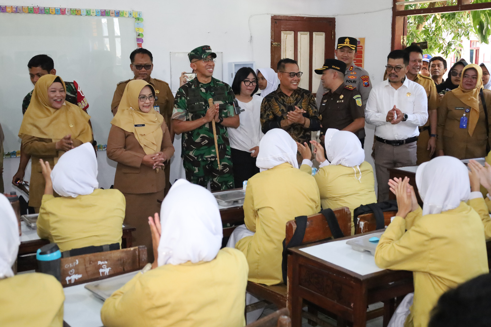 Rombongan Forkopimda sidak langsung ke SMPN 1 Magetan untuk memantau langsung proses distribusi dan memastikan para murid menerima makanan sesuai dengan yang seharusnya.