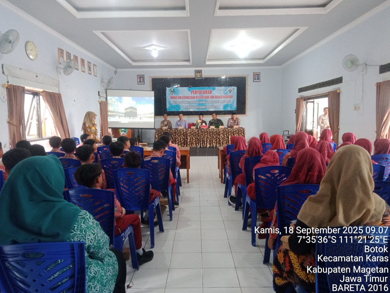 Magetan.- Kegiatan penyuluhan wawasan kebangsaan dan bela negara bagi Pemerlu Pelayanan Kesejahteraan Sosial (PPKS) Remaja Bermasalah Sosial (RBS) dan Anak yang Berhadapan dengan Hukum (ABH). Kegiatan ini di laksanakan di balai Desa Botok Kec. Karas Kab. Magetan sebagai upaya untuk memberikan pembekalan kepada para remaja yang membutuhkan rehabilitasi sosial.(Senin 22/09/25).