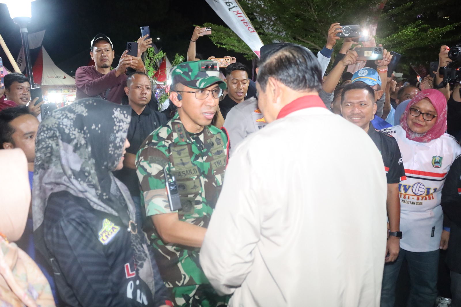 Magetan. Dandim 0804/Magetan Letkol Inf Hasan Dasuki, S.Sos., M.I.P., bersama Forkopimda menyambut kehadiran Presiden Republik Indonesia ke-6, Prof. Dr. (H.C) H. Susilo Bambang Yudhoyono, M.A., pada gelaran Livoli di Gor Ki Mageti, Magetan, Rabu malam (15/10/2025).