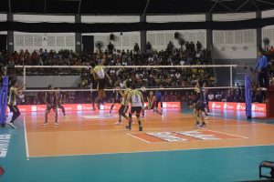 Rombongan SBY tiba di Gor Ki Mageti, sekitar pukul 19.00 WIB dalam rangka menyaksikan Livoli Divisi Utama.