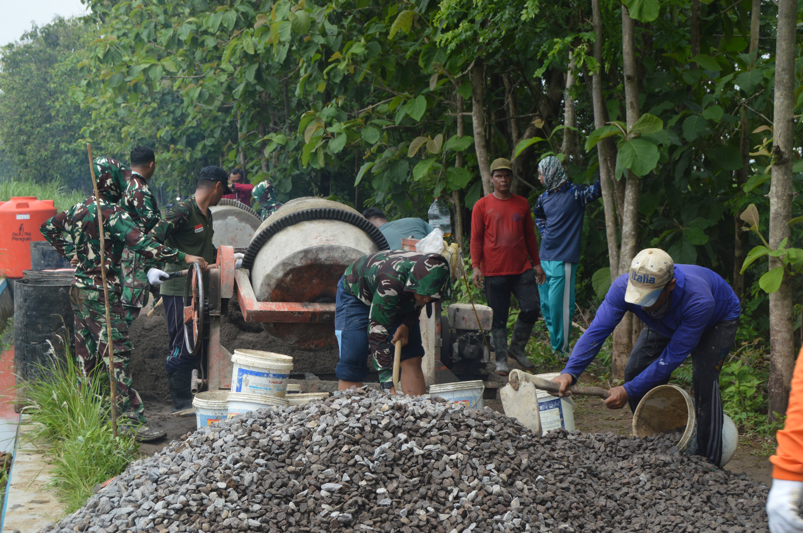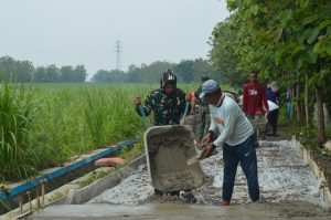 Pembangunan jalan cor di Desa Kembangan ini juga melibatkan warga secara gotong royong, menunjukkan semangat kebersamaan antara TNI dan masyarakat dalam mewujudkan desa yang lebih maju dan sejahtera.