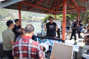 Disini Bapak Susilo Bambang Yudhoyono mengajarkan gimana cara melukis dengan keindahan alam disekitar kita kepada semua pelajar yang hadir disini, yang bertujuan agar menciptakan pelukis-pelukis muda.