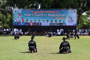 Dengan mengenakan sarung dan peci khas santri, suasana upacara berlangsung khidmat dan penuh semangat nasionalisme. Tema Hari Santri tahun ini “Mengawal Indonesia Merdeka Menuju Peradaban Dunia”, menegaskan peran besar kaum santri dalam menjaga nilai-nilai keagamaan, kebangsaan, persatuan dan membangun peradaban dunia.