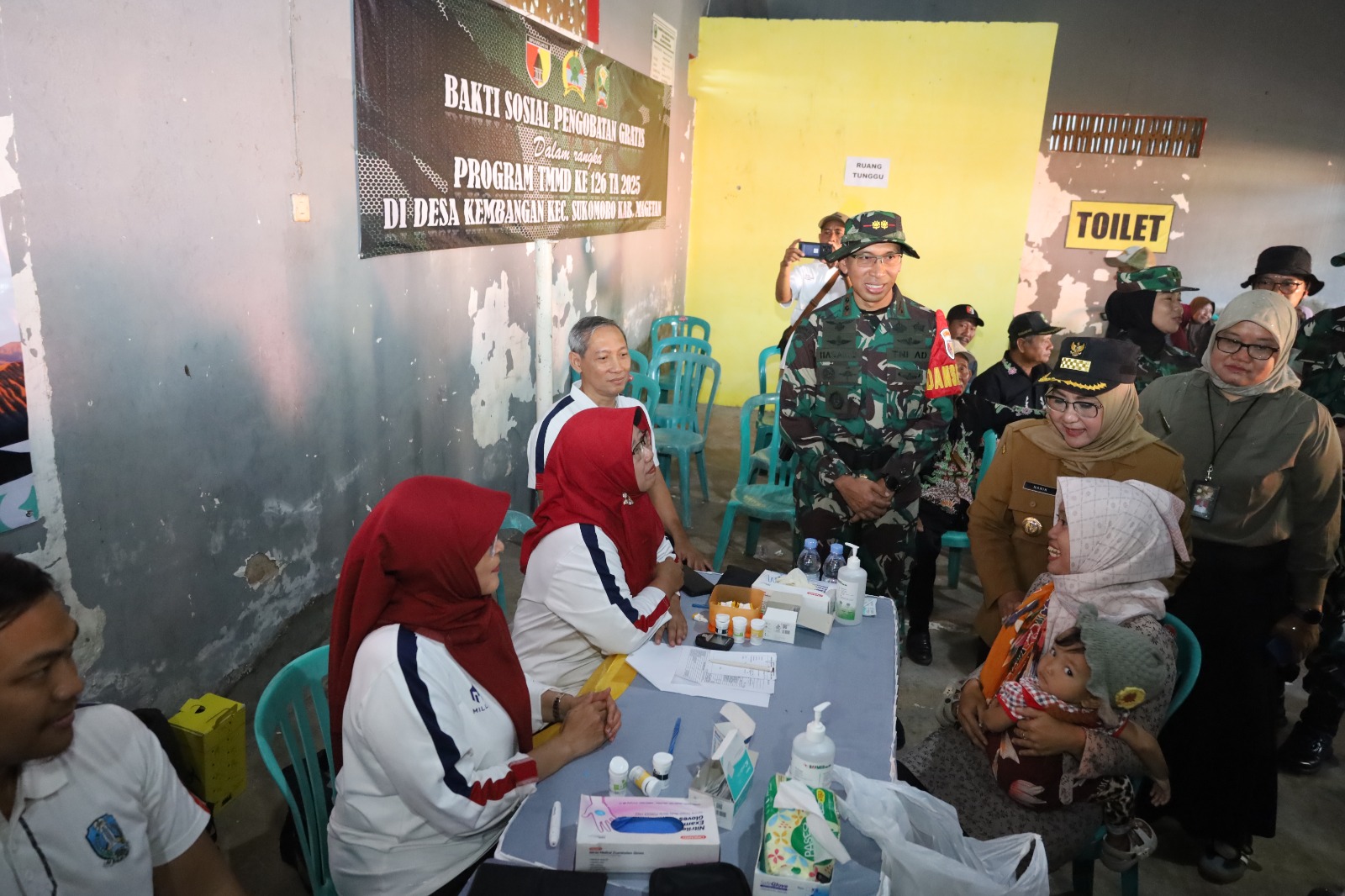 Magetan. Kegiatan pengobatan gratis yang diadakan oleh Satgas TMMD ke-126 Kodim 0804/Magetan di Balai Desa Kembangan, Kec. Sukomoro mendapat sambutan hangat dari masyarakat. Sejak pagi, warga Desa Kembangan mulai berdatangan untuk mendapatkan layanan medis gratis. Rabu (8/9/2025)