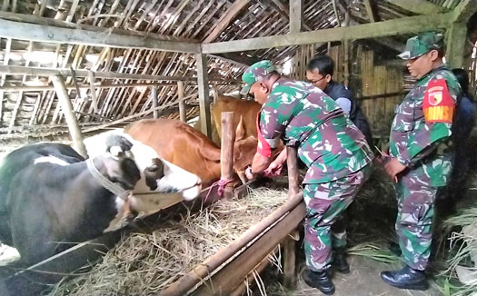 Magetan. Serka Suharno Babinsa Koramil Tipe B 0804/04 Parang Kodim 0804 Magetan bersama Dinas Peternakan Kabupaten Magetan melakukan penaggulangan penyebaran wabah Penyakit Mulut dan Kuku (PMK) melalui penyuntikan vaksin hewan ternak sapi milik masyarakat. Kegiatan tersebut dilaksanakan di Desa Bungkuk, Kecamatan Parang, Kabupaten Magetan, Selasa (2/08/2022). Dalam kegiatannya Serka Suharno selaku Babinsa setempat mengungkapkan kegiatan Read More