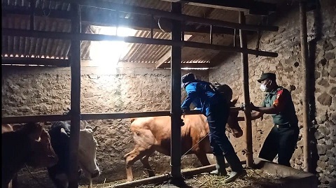 Magetan. Sebagai upaya untuk mencegah terjadinya penyebaran Penyakit Mulut dan Kuku (PMK) di wilayah binaannya, Babinsa Koramil 0804/05 Poncol Kodim 0804/Magetan Serda Dedi, melaksanakan kegiatan pendampingan vaksinasi PMK terhadap hewan ternak sapi milik warga desa binaannya, yang dilakukan oleh Dinas Peternakan Kabupaten Magetan di Desa Poncol Kecamatan Poncol, Kabupaten Magetan. Sabtu (6/8/2022). Serda Dedi menjelaskan, Read More