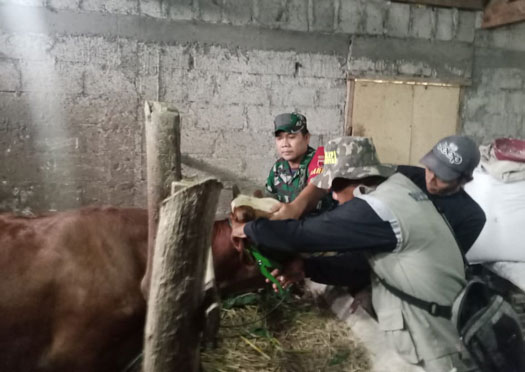 Babinsa Poncol Dampingi Giat Vaksin Cegah PMK Di Desa Binaanya