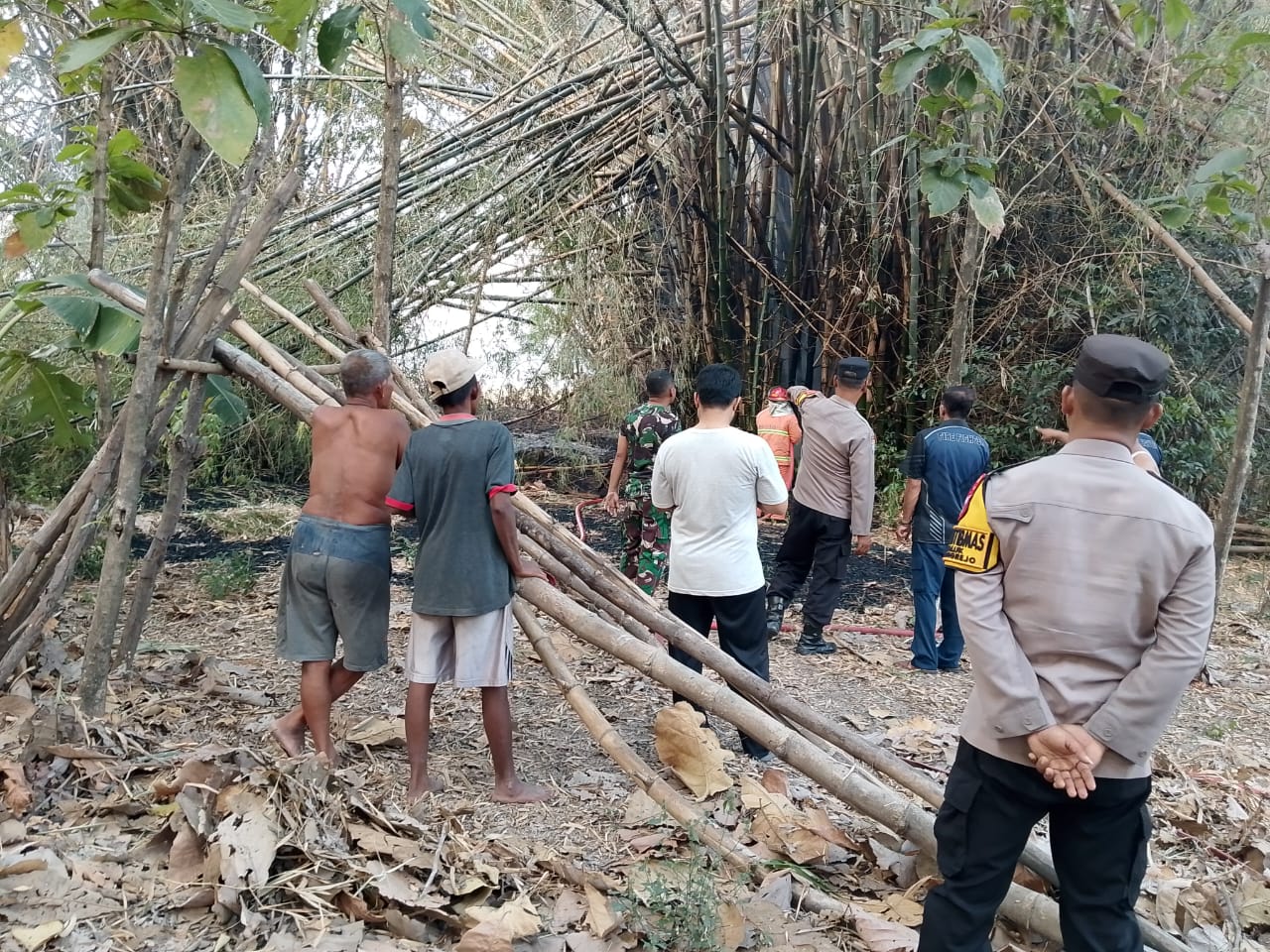 Magetan.- Serda Fajar Babinsa ds. Kauman Koramil 0804/07 Karangrejo Kodim 0804/Magetan dan Bhabinkamtibmas beserta warga bergerak cepat membantu memadamkan api yang membakar lahan rumpun bambu milik warga Desa Kauman Kecamatan Karangrejo Kabupaten Magetan, Minggu (03/08/2025). Bati Tuud Koramil 0804/07 Karangrejo Serma Andi mengatakan, pihaknya mendapatkan informasi ada kebakaran diwilayah Binaan Teritorialnya. Sehingga, Babinsa langsung diterjunkan Read More