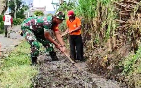 Magetan. Babinsa Koramil 0804/12 Magetan, Kodim 0804/Magetan Sertu Bambang bersama masyarakat Desa Tapen, melaksanakan kegiatan kerja bakti normalisasi saluran irigasi di Desa Tapen Kecamatan Lembeyan Kabupaten Magetan, Selasa (17/1/2023). Kegiatan Kerja Bakti ini merupakan implementasi dari Pembinaan Teritorial (Binter) Koramil 0804/12 Lembeyan. Hal itu sudah menjadi bagian dari tugas pokok TNI AD, kususnya membantu kesulitan Read More