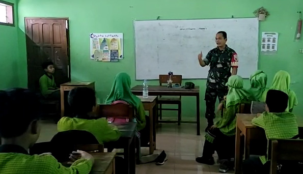 Danramil Berikan Materi Wasbang Kepada Ratusan Pelajar Siswa Siswi Madrasah Ibtidaiyah.