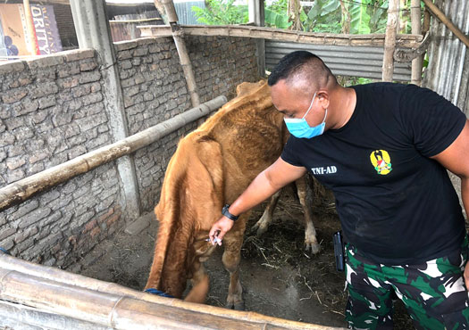 Cegah PMK, Koramil 0804/08 Barat Terus Laksanakan Pemantauan Dan Penanganan Kesehatan Ternak Di Wilayahnya