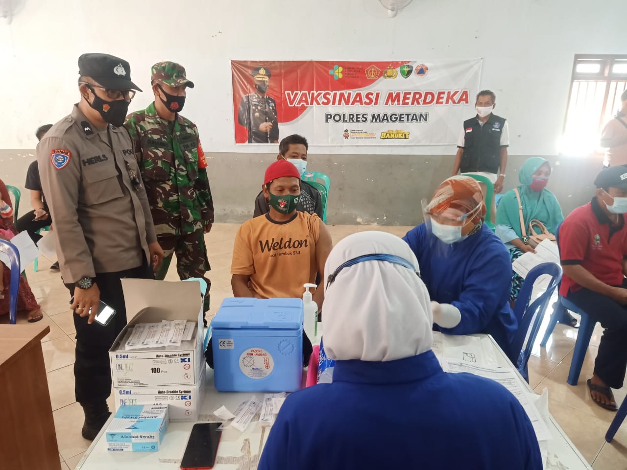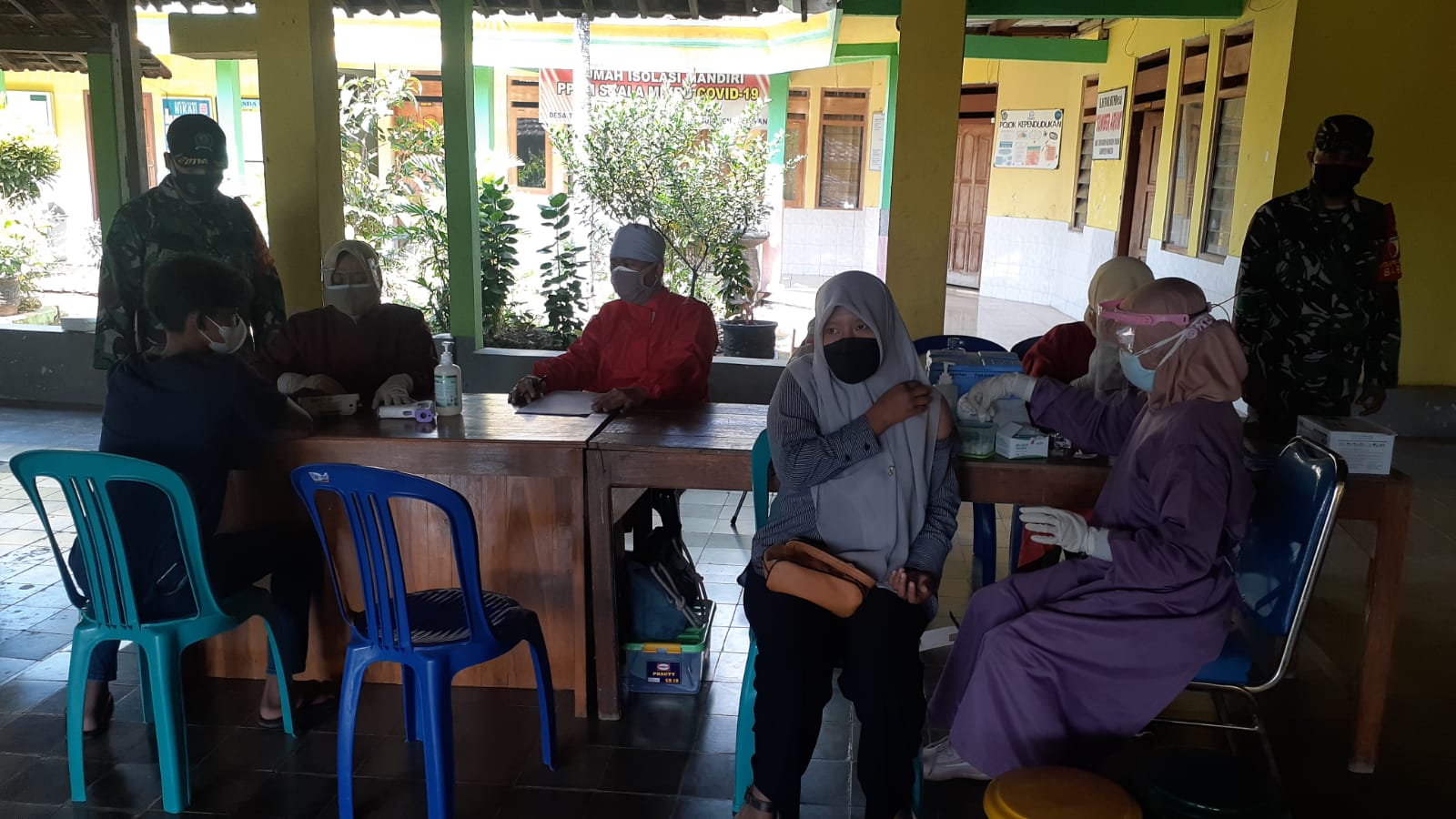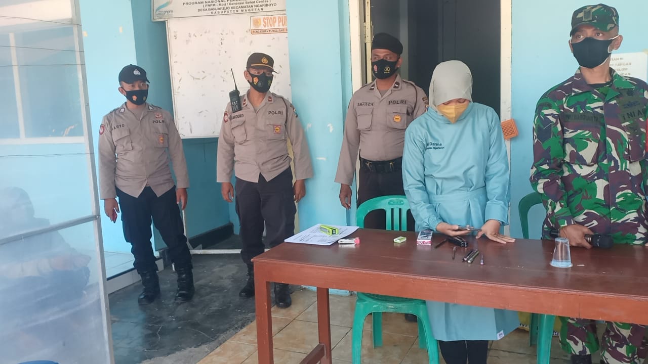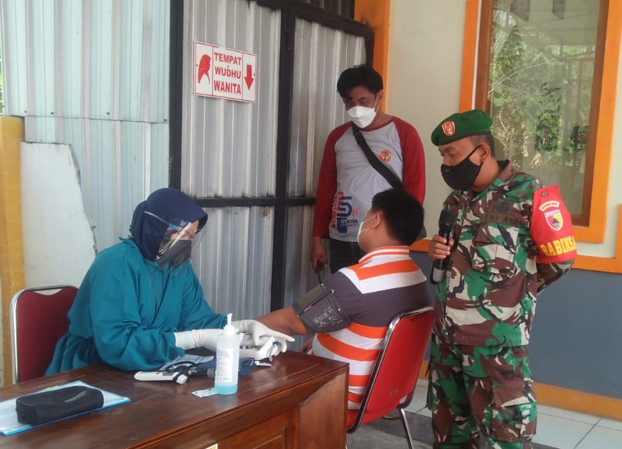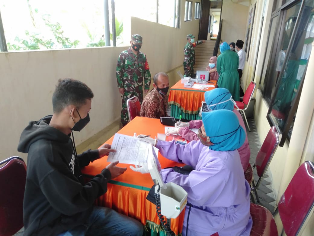 Magetan. Babinsa Desa Banjarejo Posramil Ngariboyo Koramil Tipe B 0804/01 Magetan Kodim 0804 Magetan Serma Dwi Herbiyanto melaksanakan pengamanan kegiatan penyuntikan Vaksinasi Covid 19 (Sinovak) tahap II kepada warga Desa Banjarejo dan warga yang berada di wilayah Kecamatan Ngariboyo yang di ikuti 70 orang bertempat di Balai Desa Banjarejo Kecamatan Ngariboyo kabupaten Magetan.Selasa (07/09/2021) Hadir Read More